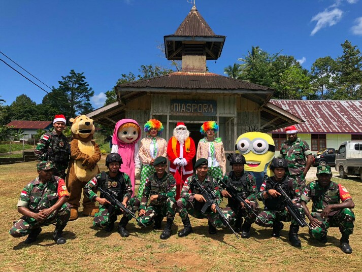 Pos Koki Mindiptana dipimpin langsung oleh Dankipur Lettu Inf Rio Sispa Jaya Pratama,S.T.Han, keliling kampung mengantar bingkisan natal untuk anak anak dengan memakai Kostum Santa Claus, hal ini disambut baik oleh Masyarakat anak anak bahkan tokoh agama setempat,