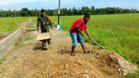 Tidak Memikir Panjang, Babinsa Koramil 20/Pb Membantu Warga Meratan Tanah Jalan
