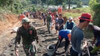 Seluruh Jajaran Koramil 1420-05/Dua Pitue Turun Langsung Kerja Bakti dengan Warga Cor Jalan Penghubung Desa Betao dengan Desa Kalempang