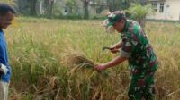 Serma Yusuf Hidayat Babinsa Koramil 17/Idi Tunong Semangat Bantu Warga Panen Padi Di Wilayah Desa Binaan