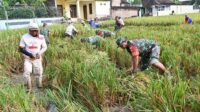 Anggota Kodim 0726/Sukoharjo Bantu Petani Panen Raya di Lahan Demplot Ketahanan Pangan