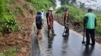 Bersama Warga, Babinsa Conto Dan Anggota Koramil 21/Bulukerto Karya Bakti Bersihkan Longsoran