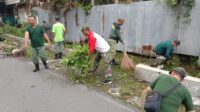 Bersama Warga, Babinsa Mangkumen Laksanakan Kerja Bakti Bersihkan Lingkungan