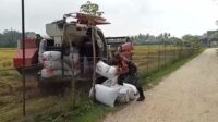 Dukung Peningkatan Hanpangan, Babinsa Aceh Timur Bantu Petani Panen Padi