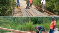 Kepedulian Koramil 1206-02/Semitau Ikut Bantu Perbaiki Jembatan