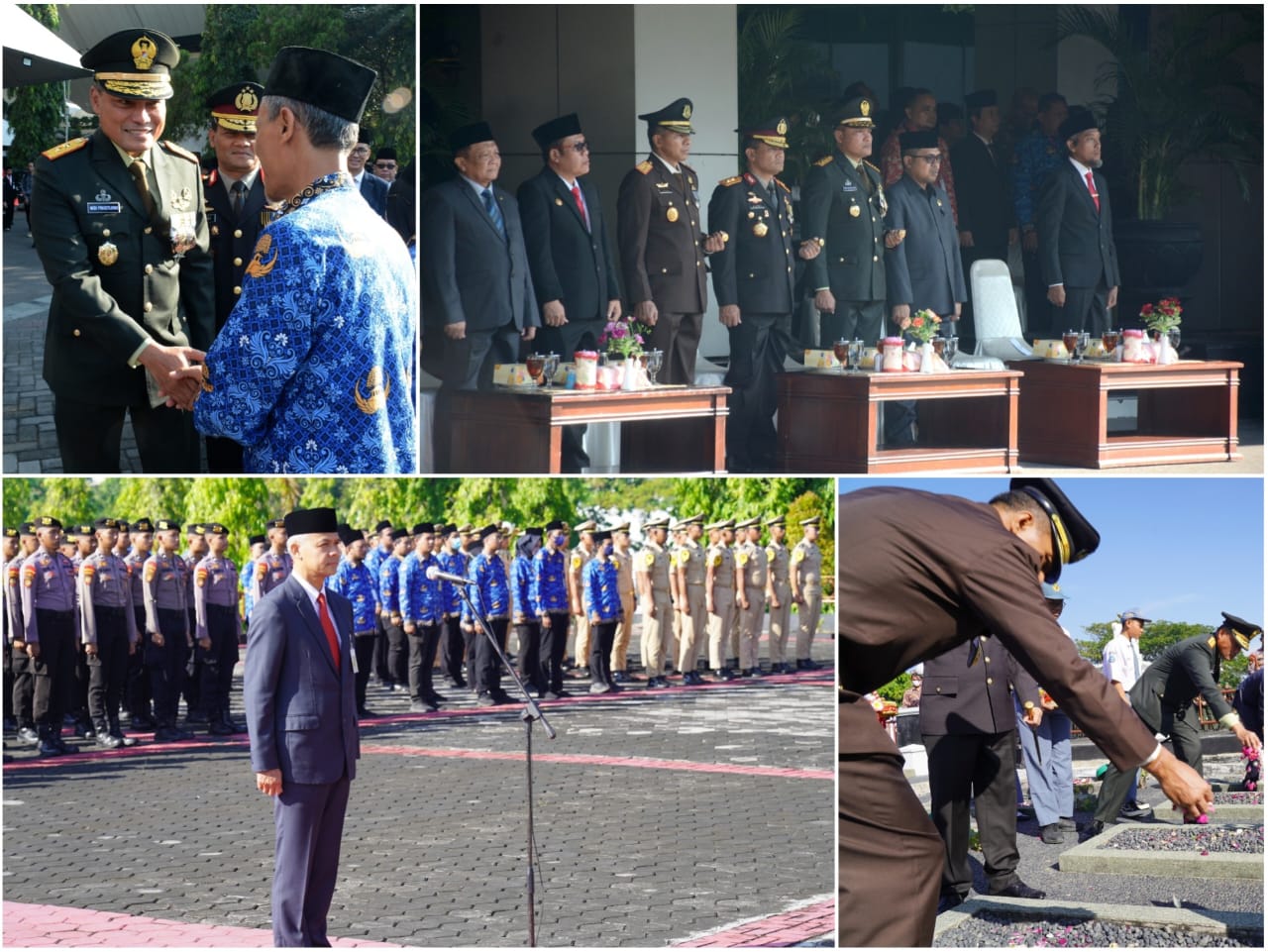 FOKUSPOST.COM | Semarang – Pangdam IV/Diponegoro Mayjen TNI Widi Prasetijono menghadiri upacara peringatan Hari Kebangkitan Nasional (Harkitnas) ke-115 tingkat Provinsi di halaman kantor Pemprov Jateng bertempat di lapangan Gubernuran, Jl. Pahlawan No.9, Mugassari, Kec. Semarang Selatan. Usai upacara kegiatan dilanjutkan dengan ziarah di Taman Makam Pahlawan Giri Tunggal, Senin (22/5/2023).