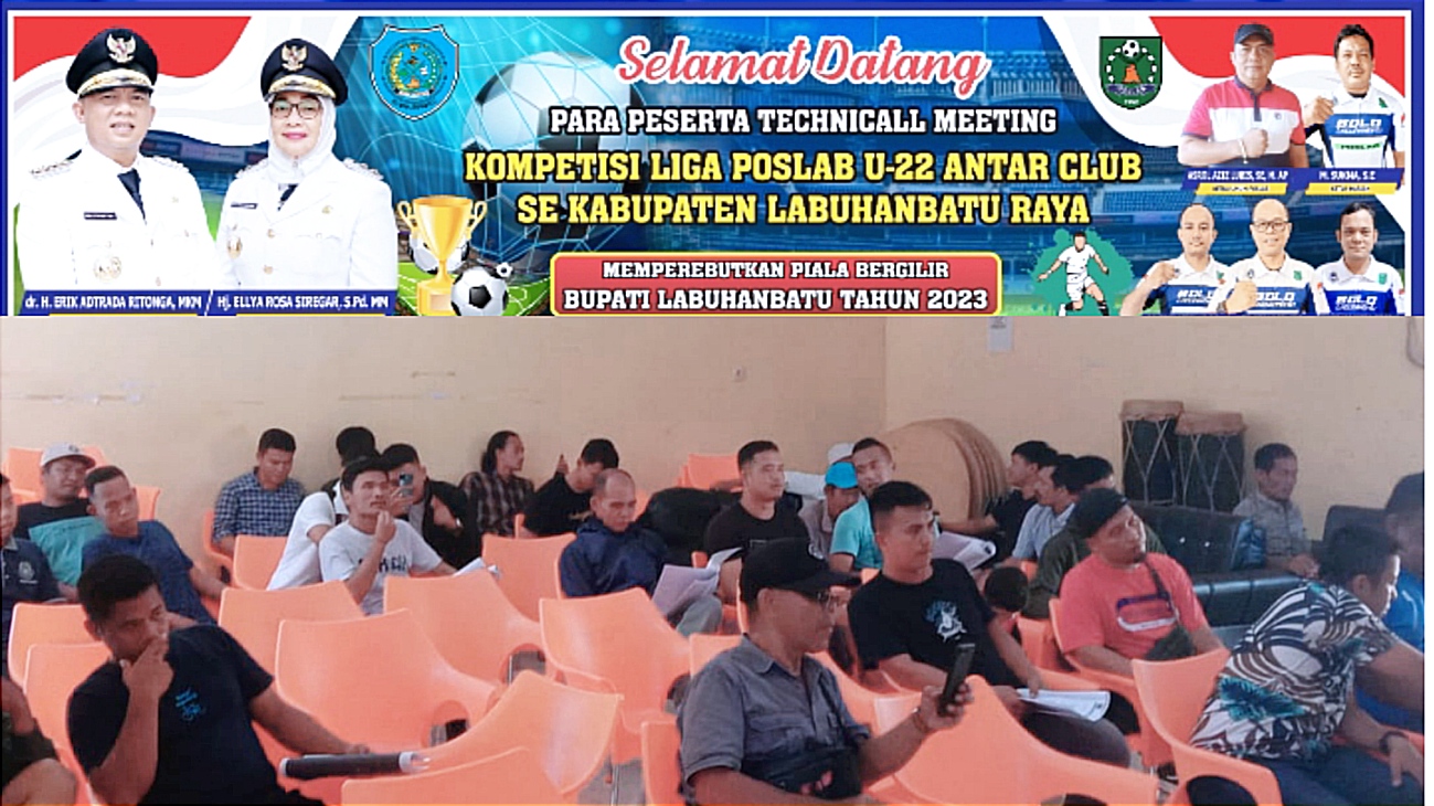 Panitia Persatuan olah raga Sepak Bola Labuhanbatu (Poslab) menggelar rapat kegiatan untuk pelaksanaan Liga Poslab Usia 22 (U-22) guna mencari bibit bibit terbaik yang mempunyai talenta di dunia sepak sepak bola menghadapi Liga III di Wisma Atlit Jalan Bina raga, Kelurahan Rantau Utara, Kabupaten Labuhanbatu, Sumatera Utara Minggu (11/6/2023).