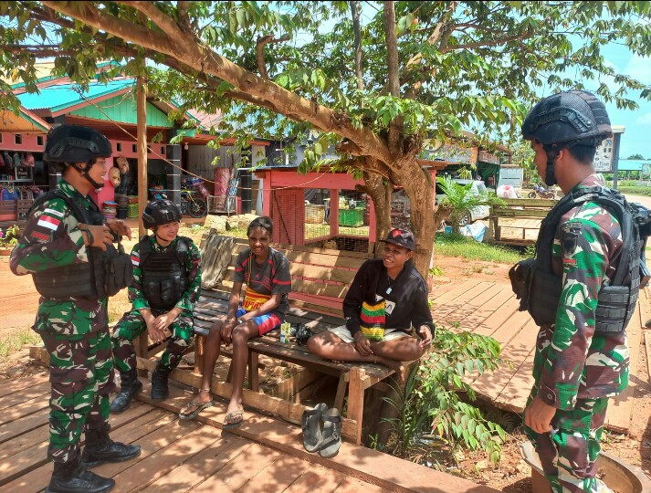 FOKUSPOST.COM | Boven Digoel ~ Satgas Pamtas Statis RI-PNG Yonif 111/KB yang bertugas di sektor Kolakops Korem 174/Anim Ti Waninggap turun ke kampung melihat suasana sekaligus mengecek kesiapan masyarakat pedalaman dalam menyambut Natal dan tahun Baru, Rabu 13/12/2023,