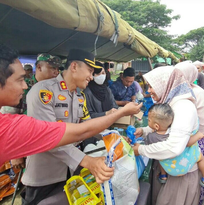 FOKUSPOST.COM | Bireuen – Kepolisian Resor Bireuen Peduli Masyarakat kurang mampu dengan membuka bazar sembako murah, Beras, Telur, dan Minyak Goreng.