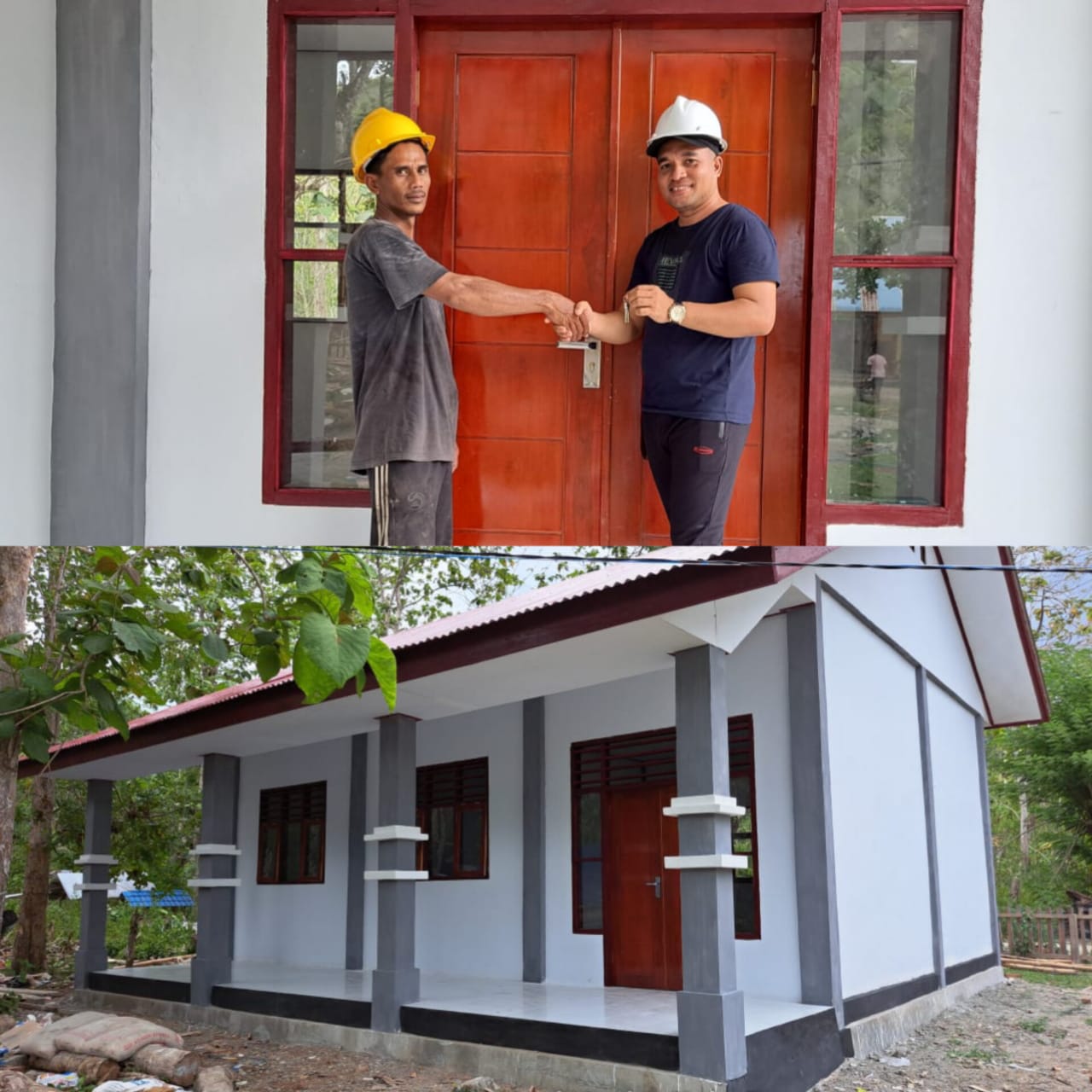 Proses penyerahan kunci pintu sebagai tanda pekerjaan telah selesai sudah diberikan dari tukang kepada kuasa Direktur CV. Souhoru Indah, M. Patti Salampessy, ST. di lokasi bangunan pada tanggal 20 November 2023.
