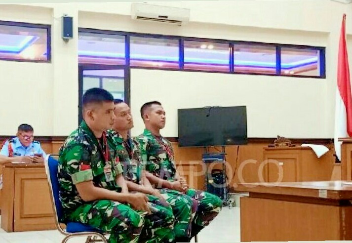 Tiga terdakwa dalam perkara dugaan pembunuhan berencana ini adalah anggota Paspampres Praka Riswandi Manik, anggota Direktorat Topografi TNI AD Praka Heri Sandi, dan anggota Kodam Iskandar Muda Praka Jasmowir.
