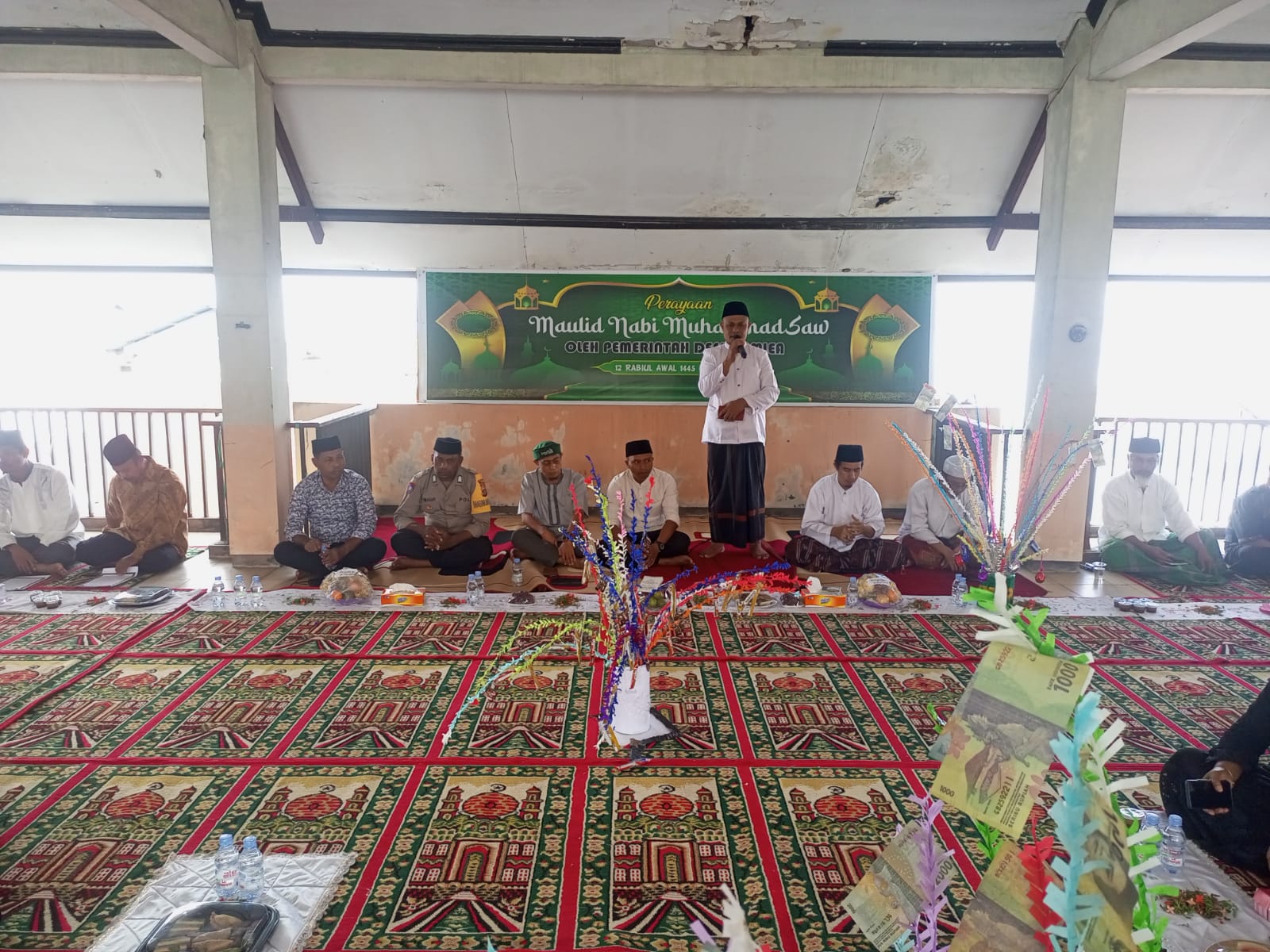 Perayaan Maulid Nabi Muhamad berlangsung di aula kantor Desa Namlea, Minggu (15/10/2023)