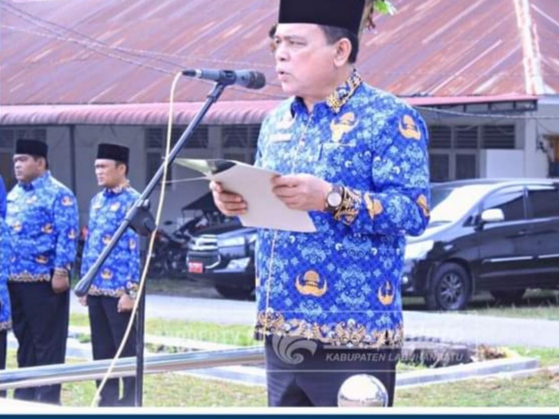 Ket.gambar : Ir.Hasan Heri saat melaksanakan apel pagi di kantor BKPP Labuhanbatu