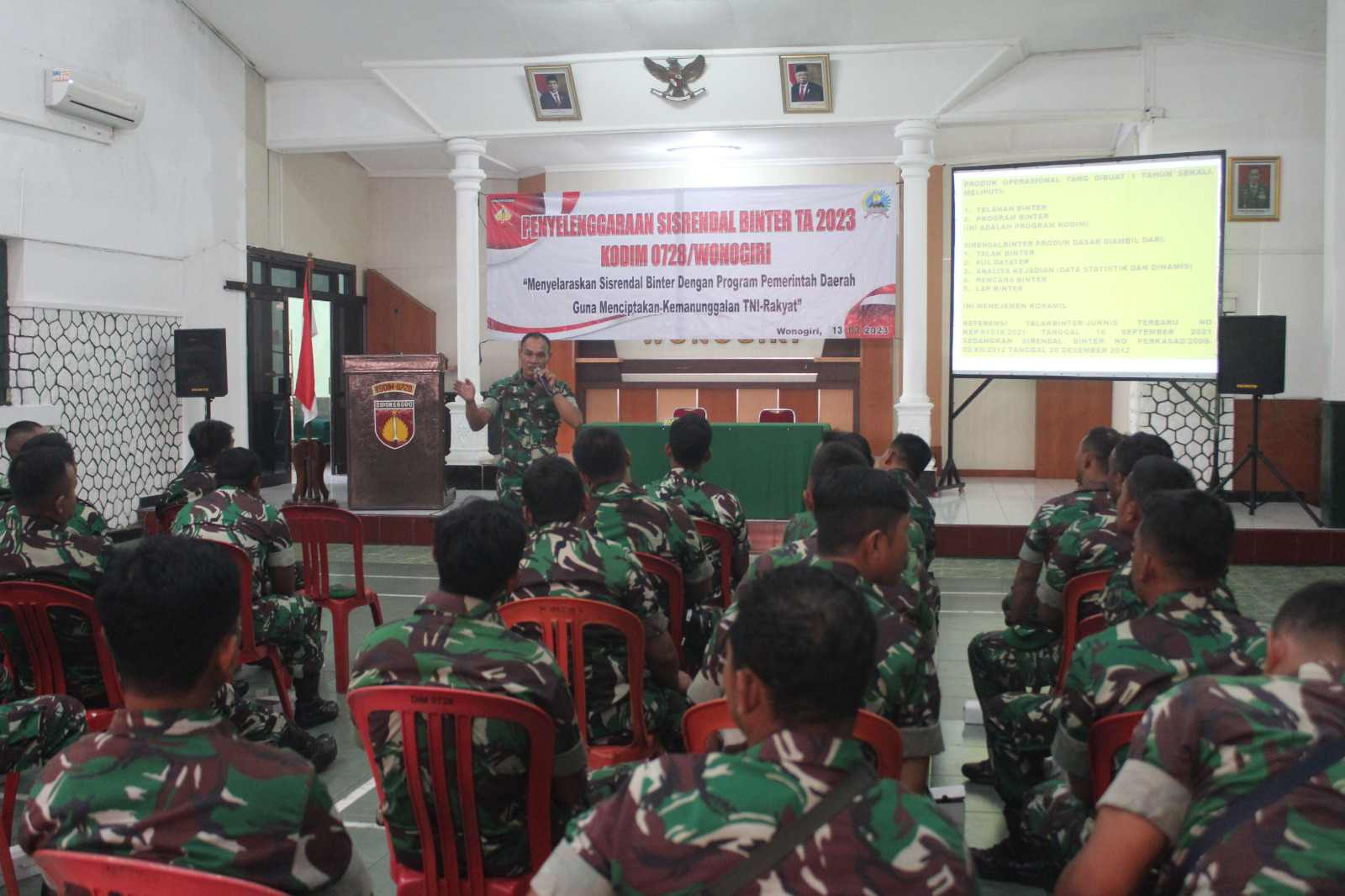 FOKUSPOST.COM | Wonogiri – Kegiatan Sistem Perencanaan dan pengendalian Binter (Sisrendal Binter) tahun anggaran 2023 dengan tema “Menyelaraskan Sisrendal Binter Dengan Program Pemerintah Daerah Guna Menciptakan Kemanunggalan TNI-Rakyat “, hari ini diselenggarakan di aula Makodim, Selasa(14/3/23).