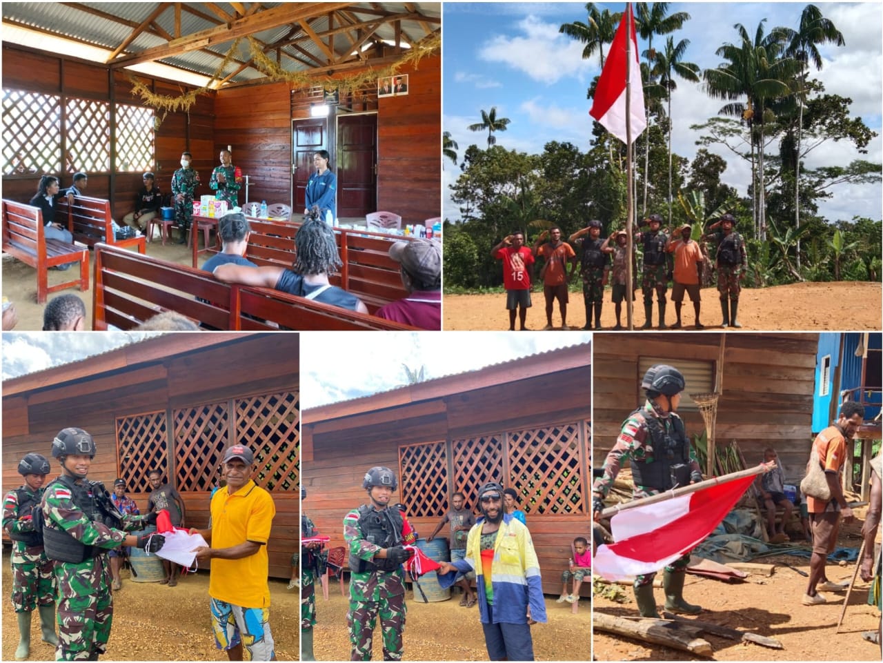 Sembari memberikan pelayanan kesehatan di Kampung Wametkapa dan Inggimbit, Serka Asrul Saeho selaku Danpos 4/A Kalikao juga memberikan Bendera Merah Putih sebagai wujud kecintaan kepada negara Republik Indonesia.