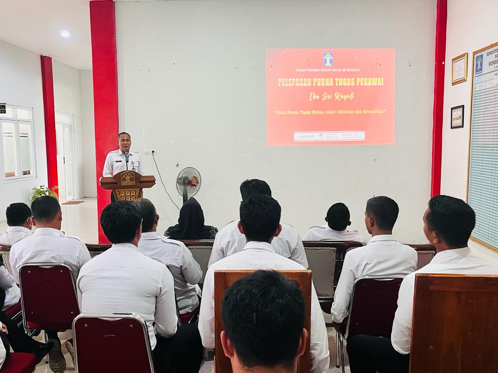 FOKUSPOST.COM |BOYOLALI – Rutan Kelas IIB Boyolali harus kehilangan salah satu pegawai terbaiknya karena telah memasuki akhir masa pengabdian, sehingga pada (30/11) siang tadi Rutan Boyolali adakan perpisahan pegawai purna bakti sebagai penghargaan atas dedikasi selama menjalani pengabdian untuk negeri di Rutan Boyolali.