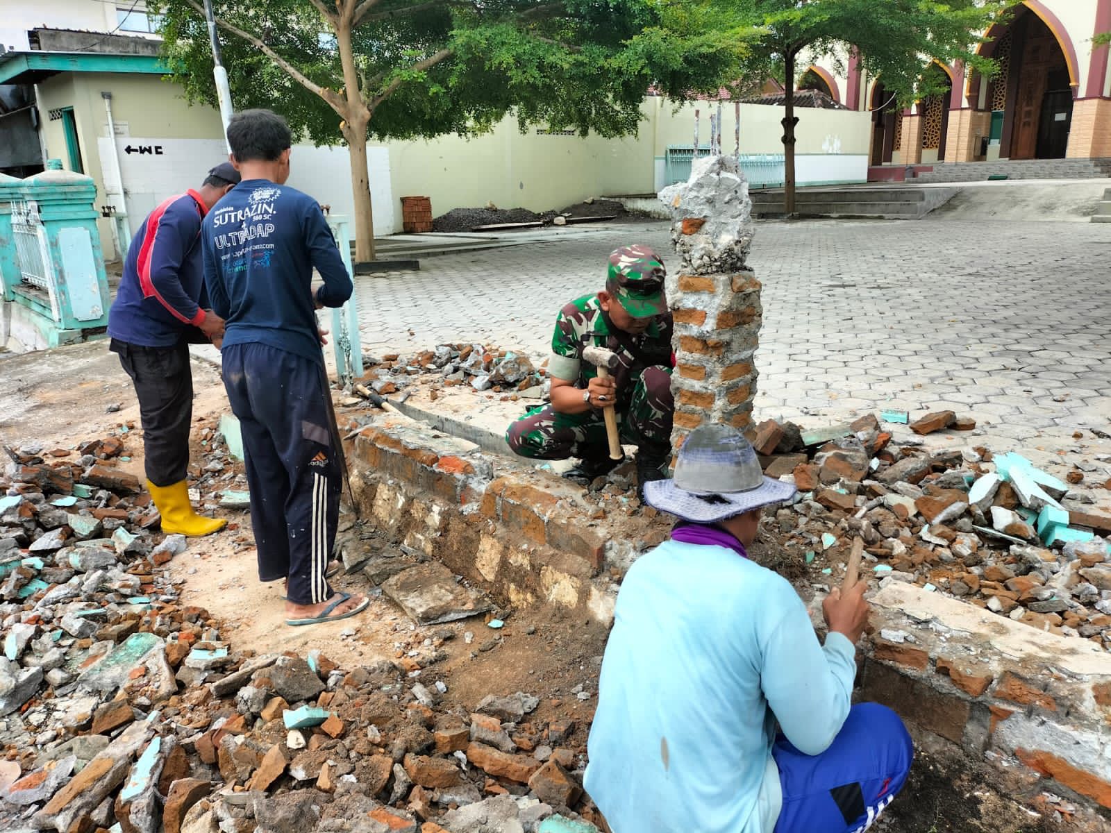Sabtu(1/4/23), Babinsa Desa Gumiwang Lor, Koramil 10/Wuryantoro Serda Dwiyanto, bersama dengan pengurus Masjid dan warga sekitar melaksanakan karya bakti pembongkaran dan Pembuatan pagar Masjid Al-Rohman yang berada di RT 02/05 DesaGumiwang Lor, Kecamatan Wuryantoro.