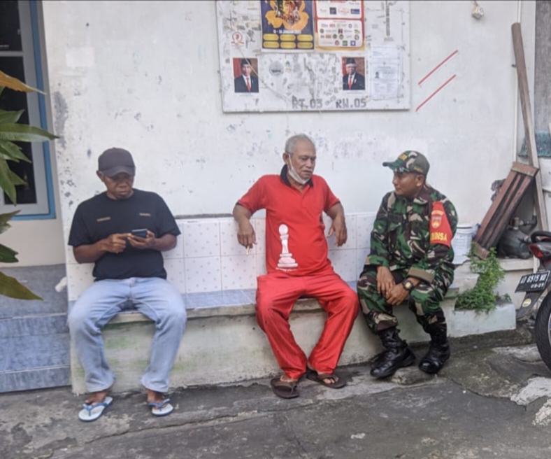 FOKUSPOST.COM | Surakarta – Dalam rangka menciptakan keamanan dan ketertiban di masyarakat dan mempererat tali silaturahmi,Babinsa Koramil 04/Jebres Kodim 0735/Surakarta Sertu Hidayat K dan Serda Agus S melaksanakan kegiatan komsos sekaligus anjangsana kepada warga binaannya di Kampung Sudiroprajan Kecamatan Jebres, Selasa (28/03/2023).