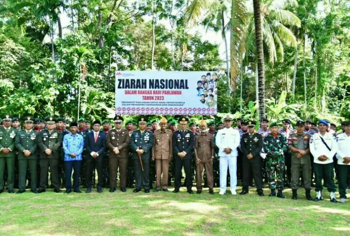 FOKUSPOST.COM | Bireuen – Dalam rangka memperingati Hari Pahlwan Ke-78 Tahun 2023, Kapolres Bireuen AKBP Jatmiko, S.H, M.H, bersama unsur Forkopimda mengikuti Upacara Ziarah Makam Pahlawan Kolonel (Purn) Husein Yusuf dan Letda (Purn) Ummi Salamah yang terletak di Desa Geulumpang Payong Kecamatan Jeumpa, Jum’at 10 November 2023