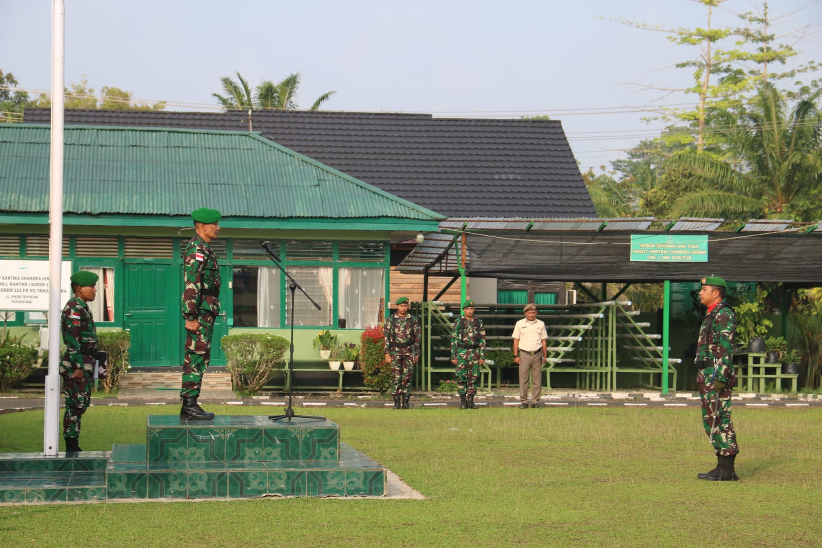 Kasdim 1206/Psb Mayor Inf Supriyono membacakan Amanat Panglima TNI Laksamana TNI Yudo Margono yang menyampaikan, ucapkan terima kasih yang tulus serta penghargaan yang setinggi-tingginya atas kerja keras dan dedikasi yang ditunjukkan oleh seluruh jajaran prajurit TNI meliputi Darat, Laut, serta Udara dan PNS.