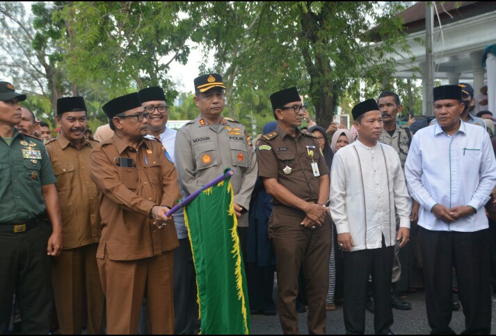 FOKUSPOST.COM | Langsa – Pj Walikota Langsa Ir Said Mahdum Majid bersama unsur Forkompinda melepaskan 176 jama’ah calon haji (JCH) kota Langsa tahun 1444 Hijriyah/2023 M, di lapangan Merdeka kota Langsa, Selasa (23/05) ba’da ashar.
