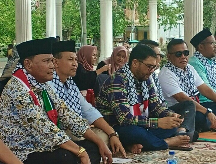 FOKUSPOST.COM | Langsa – Pj.Walikota Langsa Syaridin S.Pd, M.Pd dalam hal ini diwakili oleh Assisten Perekonomian dan Pembangunan, Ali Musafah, SE hadiri Aksi Dzikir, Doa Bersama dan Penggalangan Dana Untuk Palestina yang diselenggarankan oleh KAMMI Kota Langsa, yang dihadiri oleh para undangan dan lapisan masyarakat di Lapangan Merdeka, Minggu (03/12/2023).