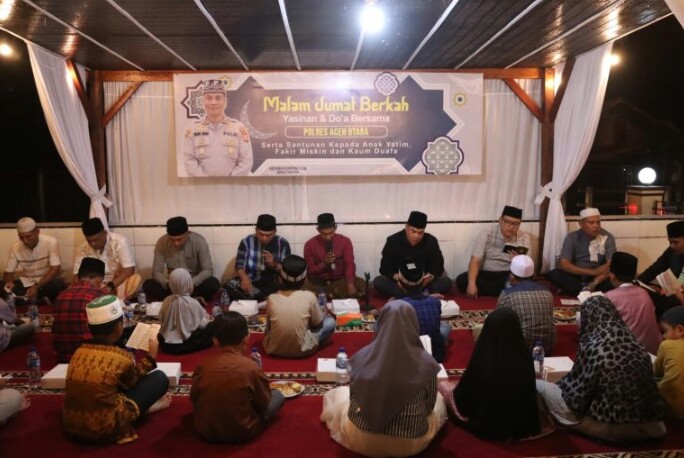 Yasinan dan do’a bersama yang di gelar ini merupakan salah satu Program unggulan Kapolres Aceh Utara dan merupakan kegiatan rutin yang dilaksanakan pada setiap malam Jumat.