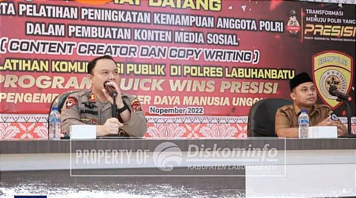 FOKUSPOST.COM | LABUHANBATU – Polres Labuhanbatu melalui Bagian Sumber Daya Manusia adakan Pelatihan Komunikasi Publik tentang Content Creator dan Copy Writing, di Aula Yanfiter Polres Labuhanbatu (Selasa, 8/11/2022), Labuhanbatu, Sumut.