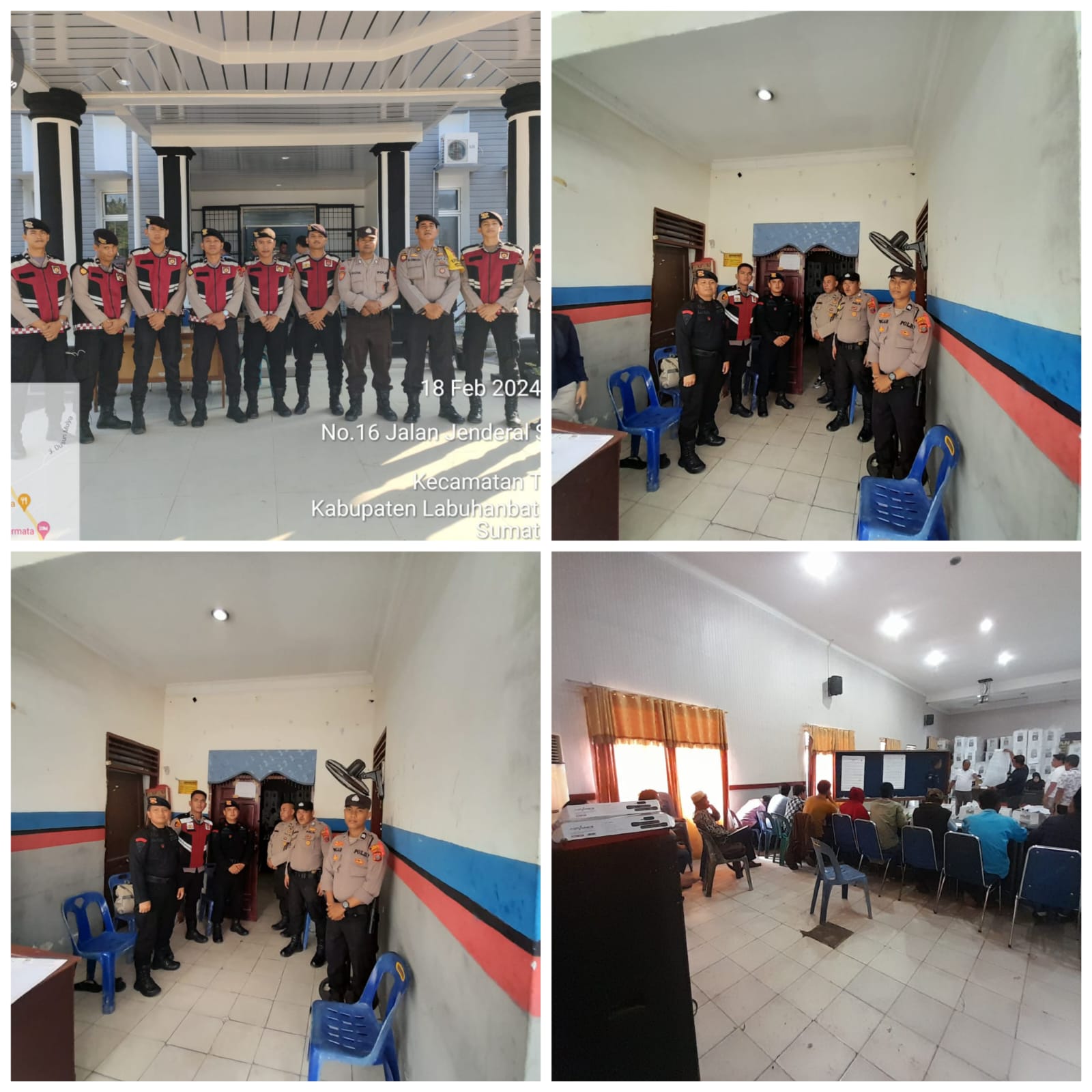 Fokuspost.com | Kotapinang – Dengan dihelatnya Rapat Pleno Rekapitulasi Hasil Penghitungan Suara Pemilu 2024 di kantor PPK Kec. Kotapinang Kab. Labuhanbatu Selatan, personel kepolisian dari Polres Labuhanbatu Selatan bekerjasama dengan personel BKO (Bantuan Khusus Operasi) Satuan Brimob Polda Sumatera Utara melakukan pengamanan ketat di sekitar lokasi tersebut. Minggu (18/2/2024).