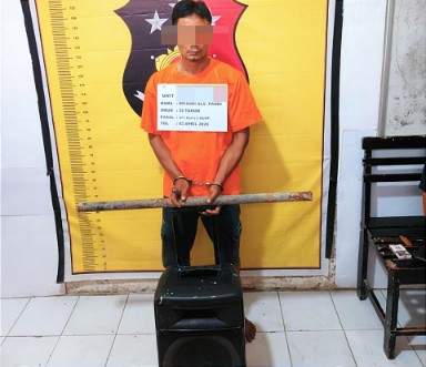 Dari tangan pelaku turut diamankan barang bukti berupa pipa besi, loudspeaker, dan obeng yang digunakan saat beraksi.