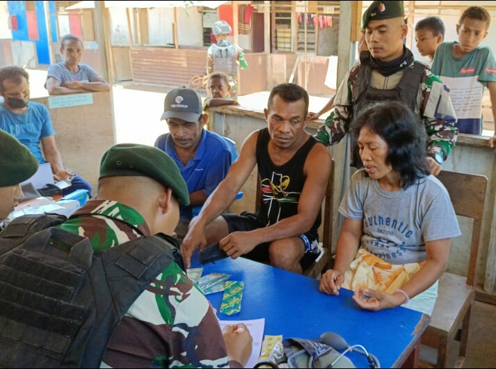 FOKUSPOST.COM | Boven Digoel ~ Satgas Pamtas Statis RI-PNG Yonif 111/KB Gelar Program Kampung Sehat memberikan pelayanan kesehatan geratis dengan menurunkan Tim Medis untuk Cek Kesehatan warga Kampung Binaan Pedalaman Kab.Boven Digoel Papua Selatan, Jum’at (03/11/2023)