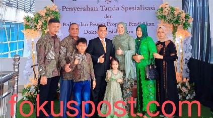 Foto : Keluarga Hj. Norma Rambe (TLLK) Dengan Puteri Sulung dr Nurhalimah, Apa.T.H.T.B.K.L,MKed (ORL-HNS) Ketika Raih Gelar Tanda Spesialisasi Dari Universitas USU