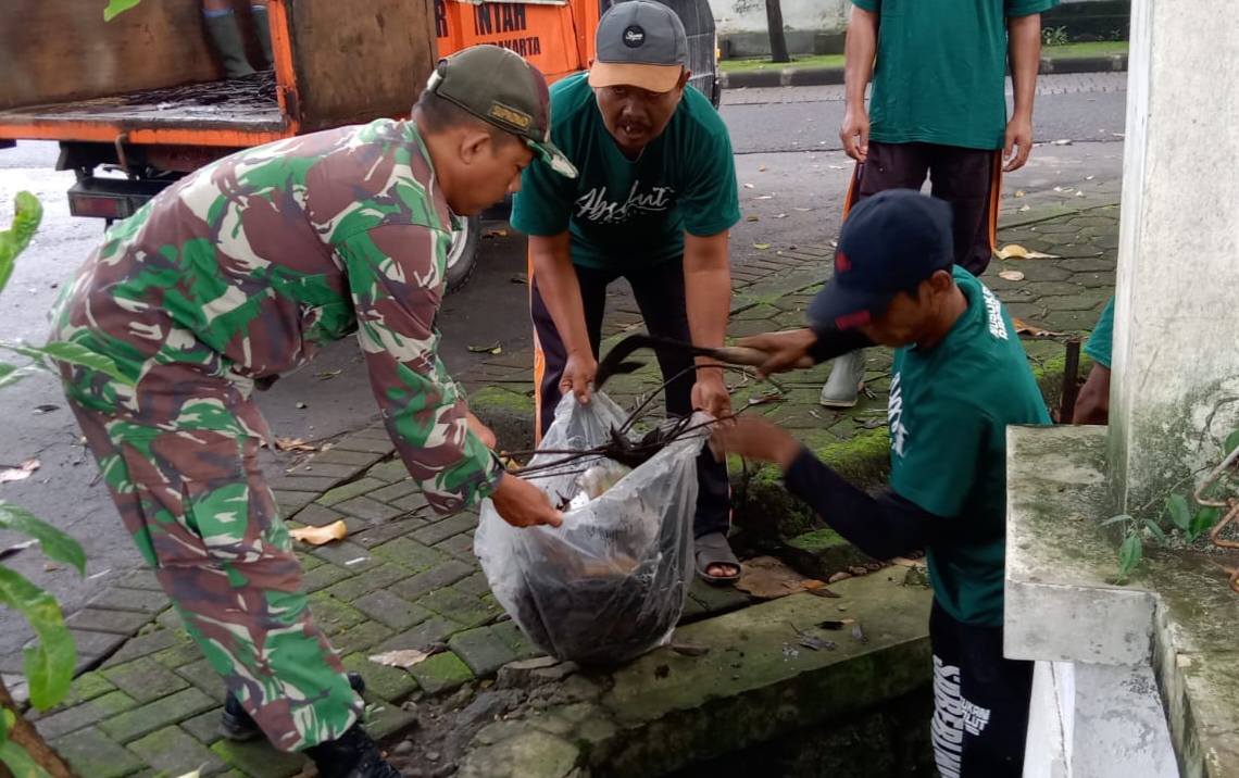 FOKUSPOST.COM |Surakarta – Babinsa Kelurahan Nusukan,Koramil 02/Banjarsari, Kodim 0735/Surakarta Serka M.Nasirin dan Serka Supadmo bersama Bhabinkamtibmas Kelurahan Nusukan Aipda Mujiono dan Linmas serta Tim Sapu Bersih Lingkungan ( Saberling) Kelurahan Nusukan melaksanakan kegiatan kerja bakti sosial membersihkan jalan dan parit serta membersihkan halaman Kantor Kelurahan Nusukan Jalan Sriwijaya Utara II No 6 Kelurahan Nusukan,Kecamatan Banjarsari, Sabtu (15/03/2023).