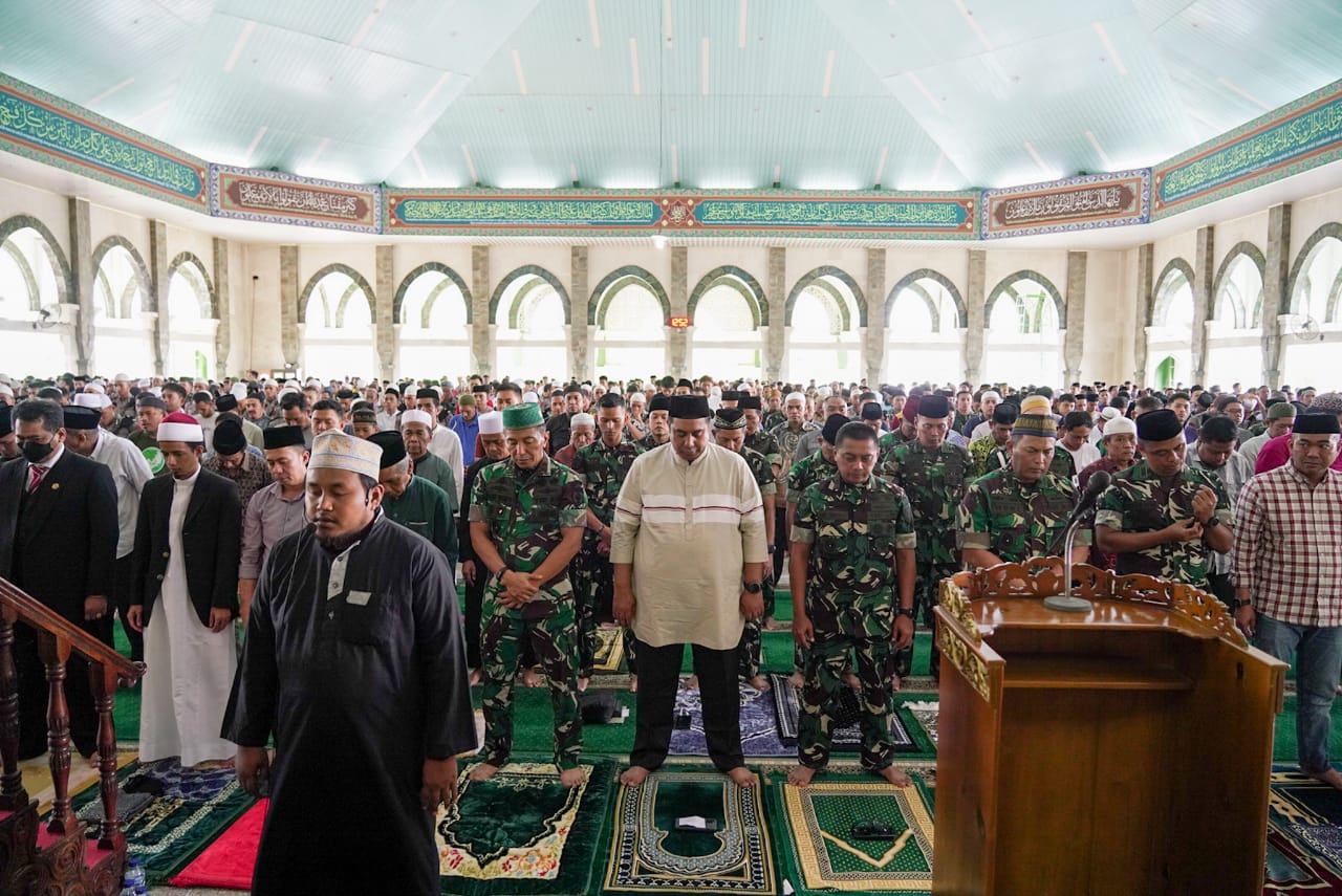 Pada kesempatan ini, Pangdam menyerahkan bantuan tunai kepada pengurus Masjid Agung Nur Arrahman sebagai bentuk sedekah dan rasa syukur atas rezeki yang diberikan Allah SWT.