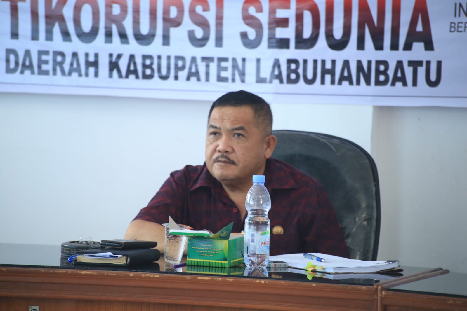 FOKUSPOST.COM | LABUHANBATU – Sekretaris Daerah Kabupaten Labuhanbatu Ir. Muhammad Yusuf Siagian, MMA didampingi Asisten lll Zaid Harahap, Kepala Inspektorat Ahlan Teruna Ritonga SH dan pimpinan OPD mengikuti peringatan Hari Anti Korupsi Sedunia (HAKORDIA) Tahun 2022 secara Virtual bersama Komisi Pemberantasan Korupsi (KPK), di Aula Bappeda. Jumat (9/12/2022), Kabupaten Labuhanbatu, Sumatera Utara.