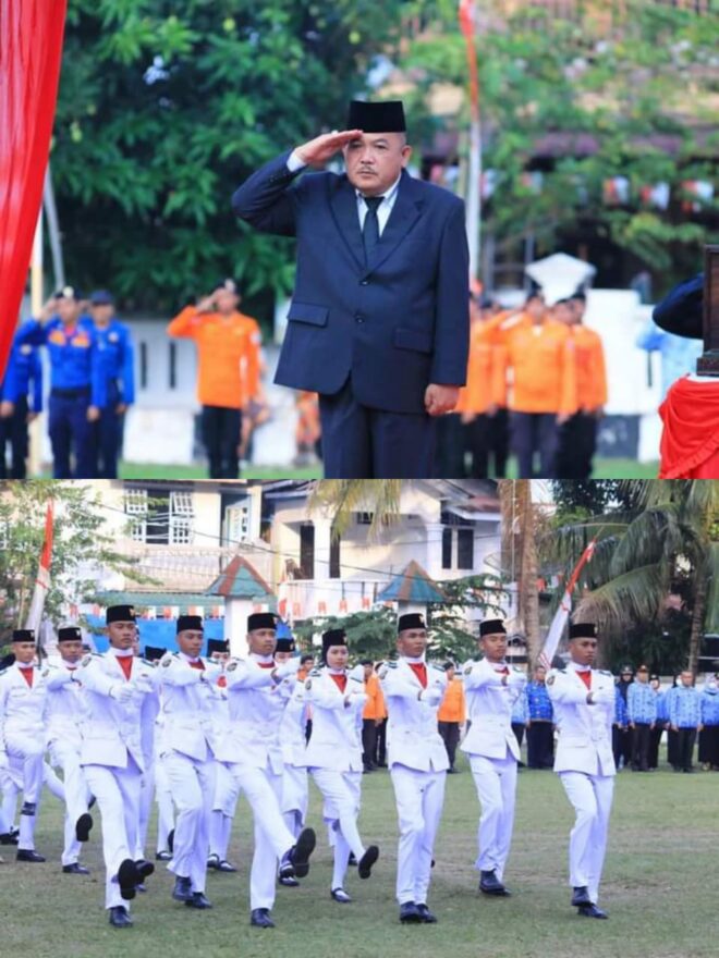 FOKUSPOST.COM | LABUHANBATU – Sekretaris Daerah Kabupaten Labuhanbatu Ir. Muhammad Yusuf Siagian MMA, jadi inspektur Upacara (Irup) penurunan bendera merah putih HUT Kemerdekaan RI Ke-77 tahun 2022 di kabupaten Labuhanbatu sukses digelar di lapangan ikabina Rantauprapat jalan M.H Thamrin Kecamatan Rantau Utara Rabu (17/8/2022), Kabupaten Labuhanbatu, Sumatera Utara.
