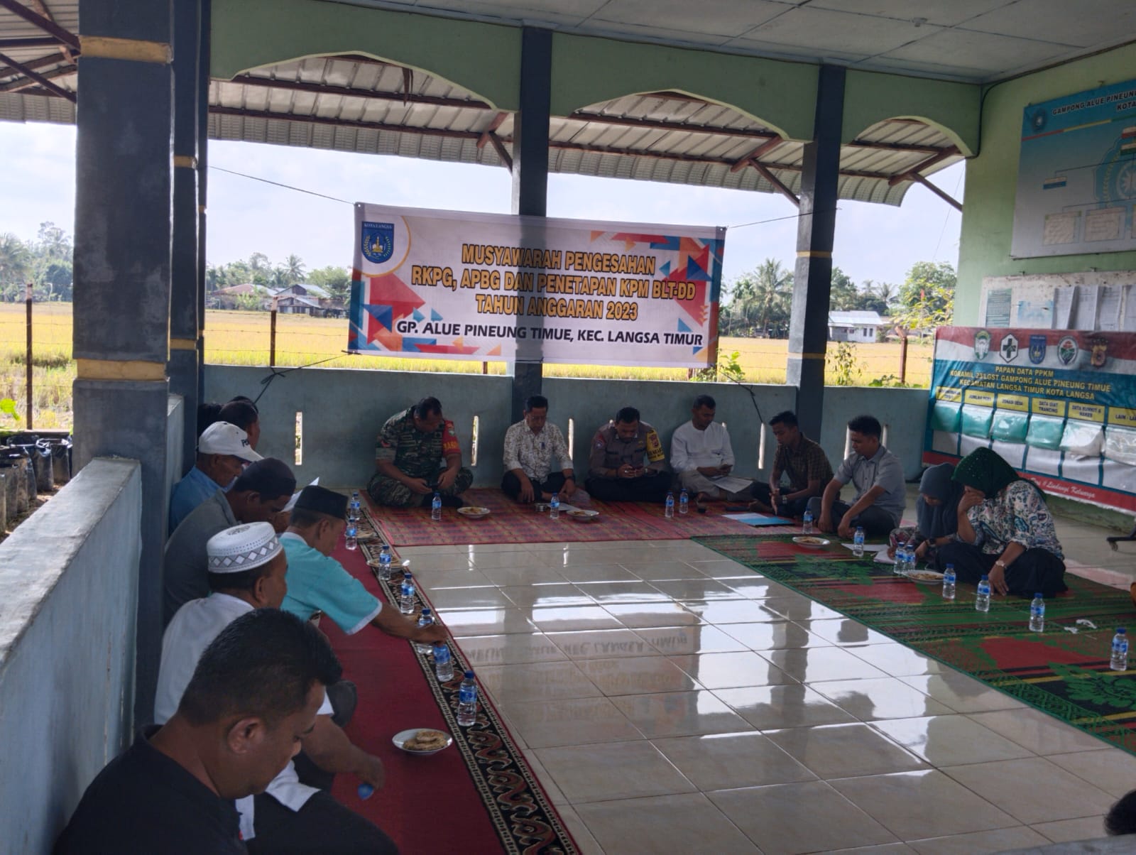 FOKUSPOST.COM | Langsa – Kopda Swandika Babinsa Koramil 23 /Lgst dan Bripka Erizal Bhabinkamtibmas Polsek Langsa Timur bersinergi dalam pelaksanaan musyawarah dan pengesahan APBG,RKPG dan penetapan KPM BLT-DD Tahun Anggaran 2023 yang bertempat di Aula Kantor Geuchik Gampong Alue Pineung timur Kecamatan Langsa Timur Kota Langsa.