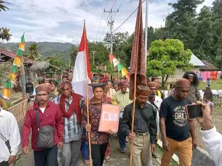 FOKUSPOST.COM | NAMLEA – Soni Nacikit siap mencalonkan diri sebagi Kepala Desa Wasi Soni Nacikit pun Menuju Sekretariat P2KD di Kantor Desa Wasi yang di iringi dengan tampilan seni Budaya Bupolo yang di kenal dengan Tuba Snawat atau (Pukul Tifa).