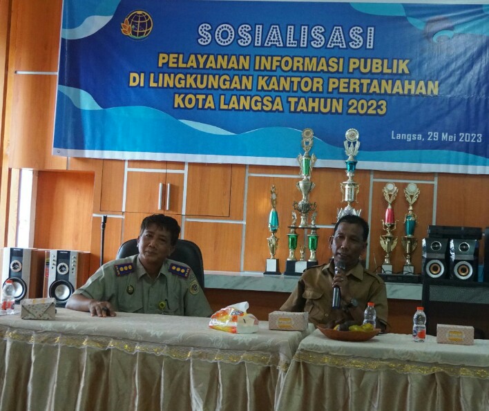 FOKUSPOST.COM | Langsa – Pemerintah Kota Langsa Melalui Dinas Komunikasi dan Informatika digandeng oleh Badan Pertanahan Kota Langsa dalam Mensosialisasikan Pelayanan Informasi Publik Terutama Sekali dilingkungan Kantor Pertanahan dalam Upaya terus mendorong kemudahan akses informasi publik, pelayanan publik sebagai upaya untuk menjamin keterbukaan informasi publik..Aula Kantor Badan Pertanahan Kota Langsa,Senin (29/05/2023 )
