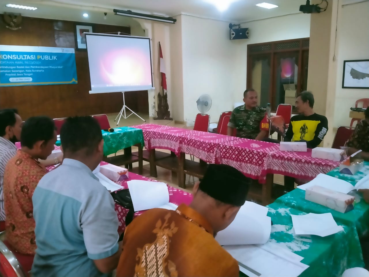 FOKUSPOST.COM | Surakarta – Babinsa Kelurahan Joyotakan Serma Mugiyanto Koramil 03/Serengan Kodim 0735 Surakarta menghadiri Rapat Koordinasi Forum Konsultasi Publik (FKP) bertempat di Balai Kelurahan Joyotakan Kecamatan Serengan Kota Surakarta. Jum’at pukul 15.00 Wib (05/05/2023)