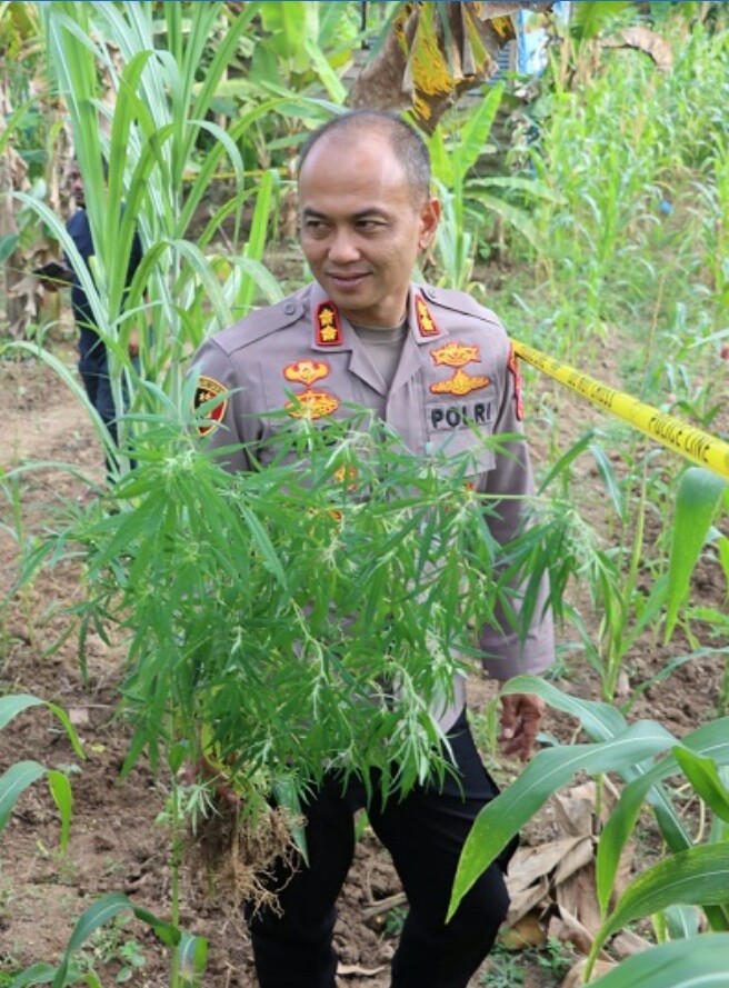 Disebutkanya, tidak kurang dari 131 batang tanaman ganja yang telah dicabut dan diamankan sebagai barang bukti, Selebihnya di bakar di lokasi, selain itu petugas juga mengamankan barang bukti berupa satu karung daun ganja kering dengan berat bruto 4,1 Kilogram,” sebut Kapolres.