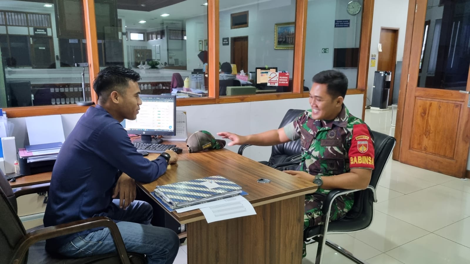 FOKUSPOST.COM | Solo – Serka Anjasmoro Babinsa Kelurahan Tipes Koramil 03/Serengan Kodim 0735 Surakarta melaksanakan Komsos di wilayah Binaan, dengan Bapak Agung selaku Pimpinan di Taspen. Jl. Veteran No.305, Tipes, Kec. Serengan, Kota Surakarta. Pukul 10.00 Wib. Selasa (3/05/2023).