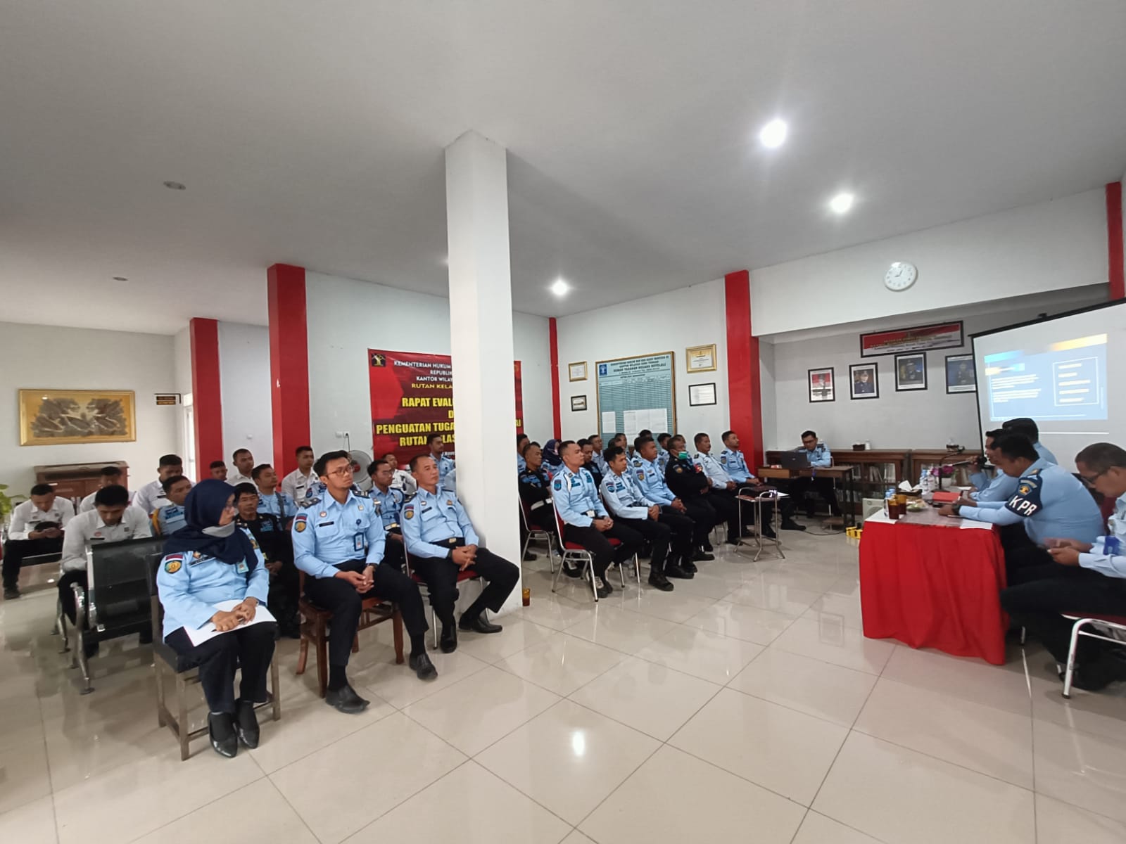 FOKUSPOST.COM | Boyolali – Dalam rangka meningkatkan kinerja bagi seluruh jajaran pegawai, Senin (7/11) Rutan Boyolali menggelar rapat dinas di aula gedung satu. Rapat dinas yang digelar kali ini bertujuan untuk mengevaluasi kinerja pada tahun 2022, memaparkan rencana kinerja tahun 2023, serta pemberian materi penguatan dan motivasi bagi seluruh pegawai.