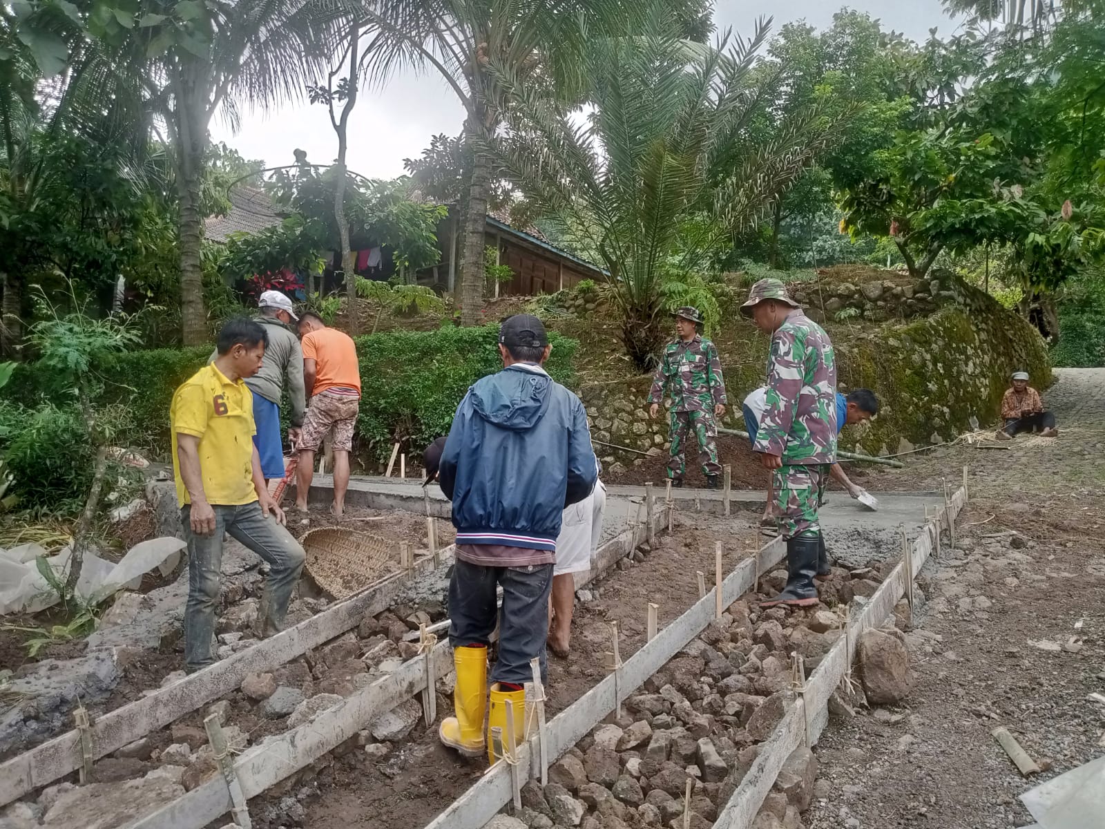 Terlihat semangat dan kekompakan antara anggota Koramil 22/Slogohimi dan warga, mereka bersama-sama bergotong royong dan saling bahu membahu dalam proses pembangunan rabat jalan yang dilaksanakan.