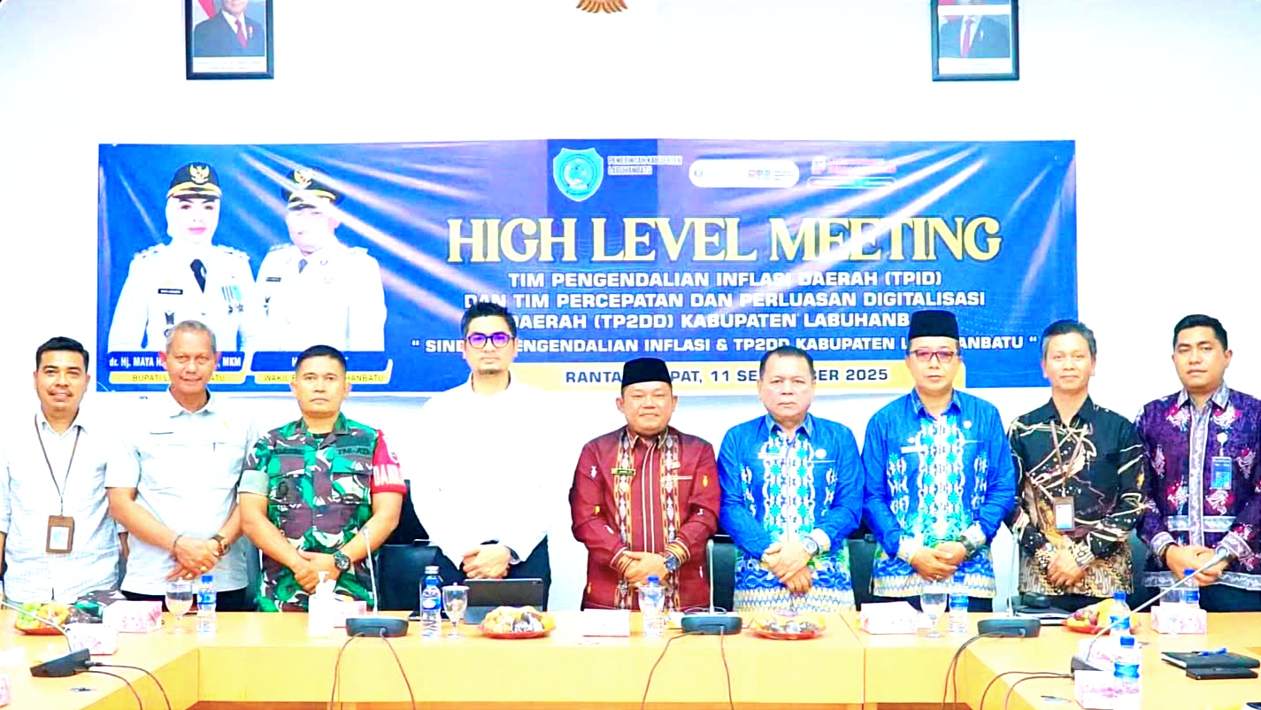 “Berdasarkan rilis BPS, inflasi Labuhanbatu pada Agustus 2025 tercatat 4,69%, melonjak dibandingkan Agustus 2024 yang hanya 2,09%,” ungkap Jamri saat memimpin High Level Meeting Tim Pengendalian Inflasi Daerah (TPID) dan Tim Percepatan Perluasan Digitalisasi Daerah (TP2DD) di Ruang Rapat Bupati, Kamis (11/9/2025).