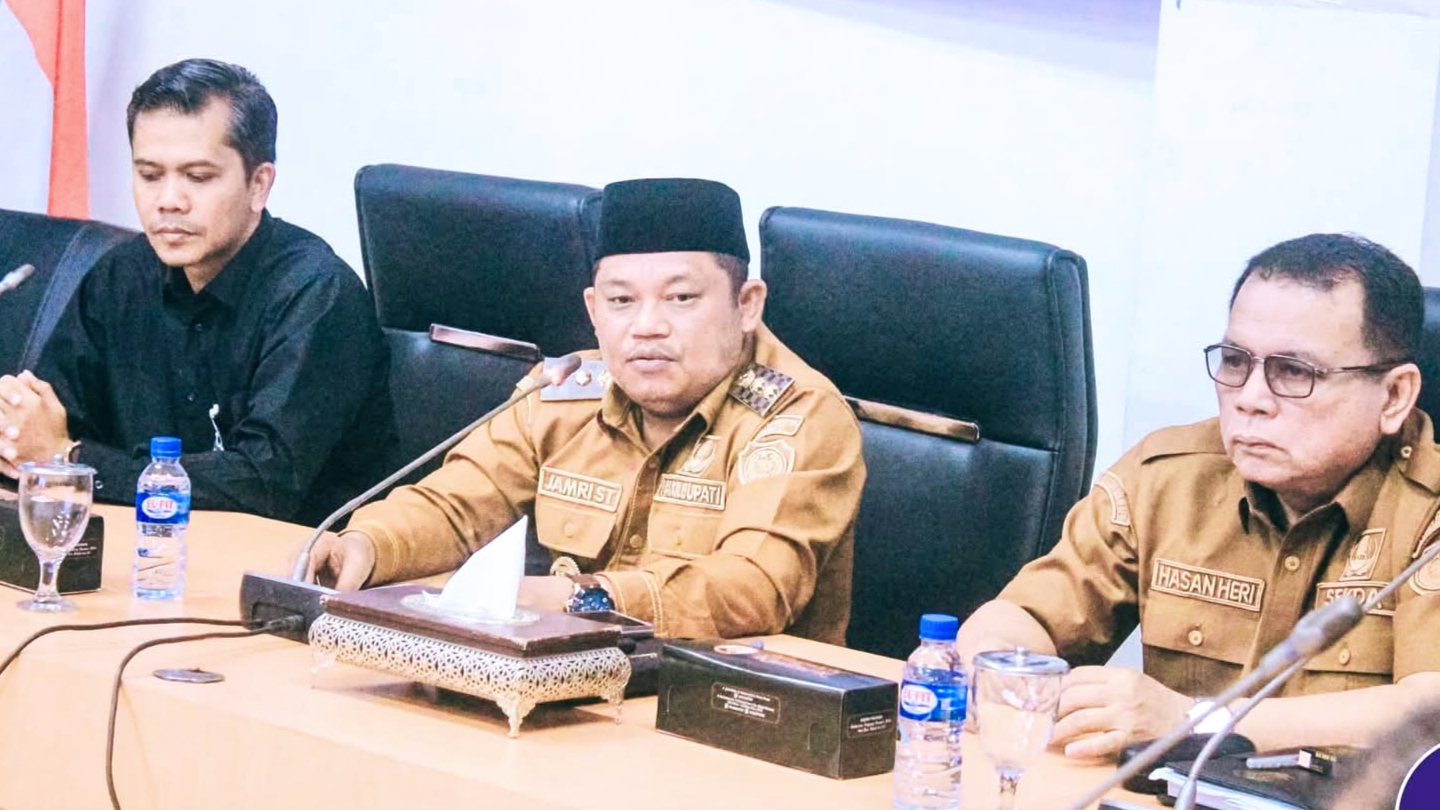 Wakil Bupati Labuhanbatu, H. Jamri, ST, menggelar rapat evaluasi capaian Universal Coverage Jamsostek (UCJ) Tahun 2025 dan Road MAP UCJ Kabupaten Labuhanbatu Tahun 2025-2029 bersama BPJS Ketenagakerjaan Labuhanbatu, di Ruang Rapat Bupati Labuhanbatu, Kelurahan Ujung Bandar, Kecamatan Rantau Selatan, Selasa (16/9/2025).