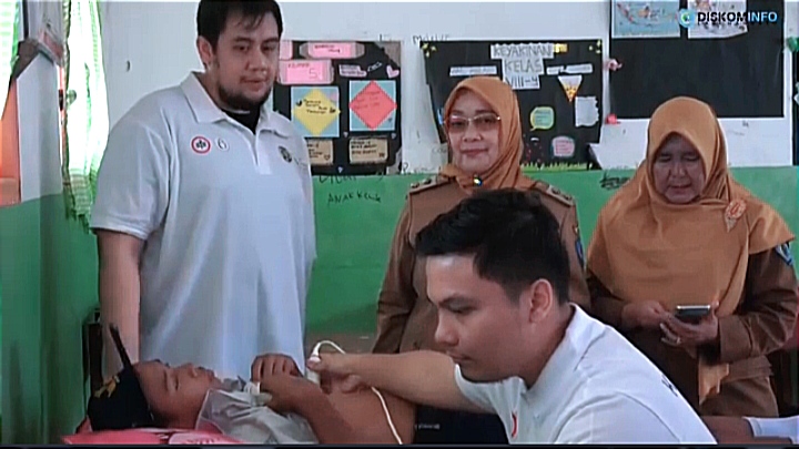 Wakil Bupati Labuhanbatu Hj. Ellya Rosa Siregar S.Pd, MM., didampingi Kepala Sekolah SMP N1 Rantau SelataN Rita Agustina S.Pd meninjau pelaksanaan kegiatan pemeriksaan jantung di SMP N 1 Rantau Selatan. Jalan K.H. Dewantara, Kecamatan Rantau Selatan, Senin (12/6/2023).