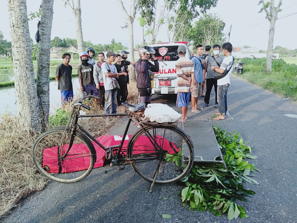 Tak jauh dari tubuh korban, saksi menemukan sepeda yang membawa dedaunan yang diduga untuk pakan ternak. Keterangan keluarga, korban tidak memiliki penyakit kronis, dan setiap harinya memang mencari pakan untuk kambingnya.
