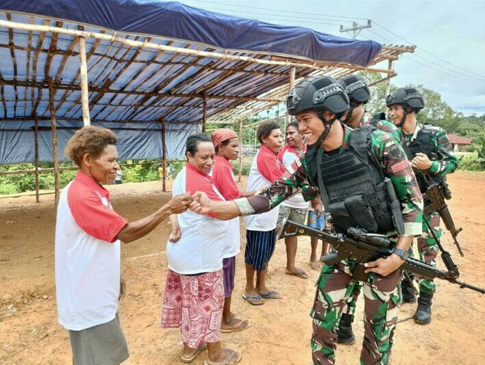 Letda Inf. Reynaldi Herzegovinda Devar S.Tr.Han selaku Danpos Pengamanan Sektor Ninati mengatakan Kondisi Masyarakat pada umumnya suku pribumi setempat dan sebagian berasal dari suku pegunungan, kami membagikan baju NKRI dukungan Ster Mabes TNI untuk Masyarakat khususnya kaum perempuan dalam rangka menumbuhkan jiwa Nasionalisme dan Cinta Tanah Air untuk Masyarakat Kampung Binaan Pos Ninati, “Ujarnya,